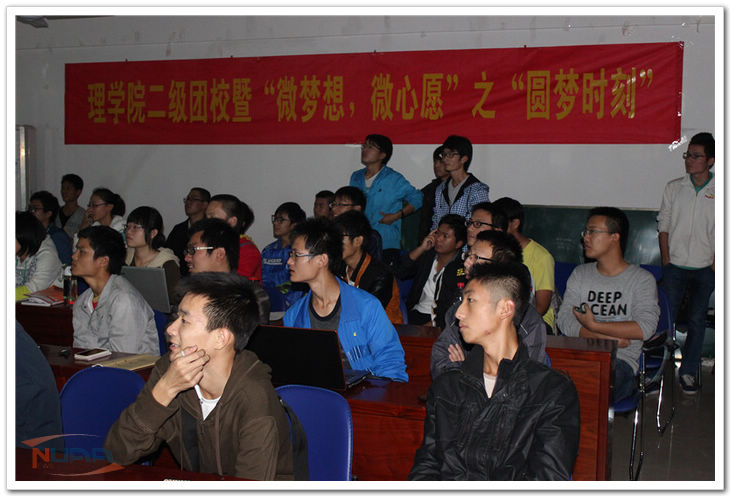 2013年11月1日,理学院第一次圆梦时刻活动于2302教室温情上演,院团委书记周佼佼、辅导员卢逸、何源出席活动,全体大一新生及部分高年级学生参加了本次活动。