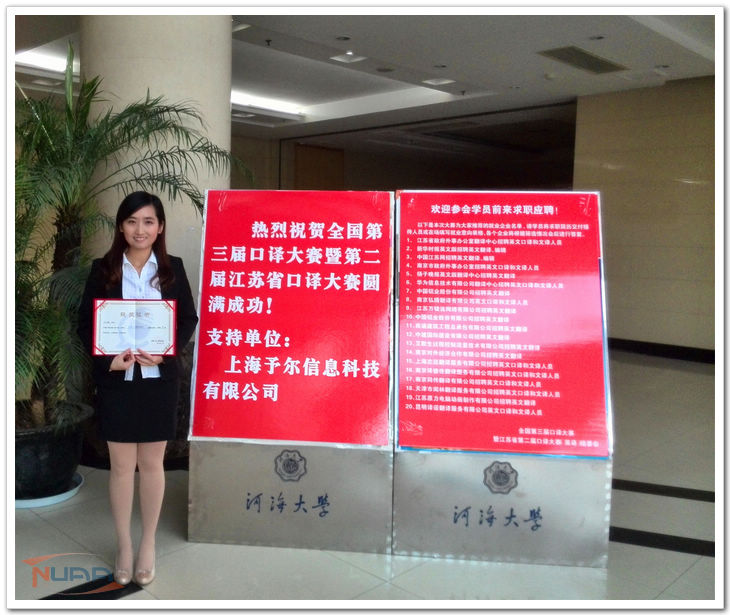 近几年,为加强对学生实践创新能力的培养,外国语学院英语系坚持以教师为主导、学生为主体的教育思想,不断推动教育教学改革,提出了“实践-研究型”教学模式,并以此为基础实现人才培养模式的探索和创新。贯彻实践-研究型教学和人才培养模式的重要举措是积极组织、广泛发动学生参加各类不同级别的英语竞赛。在学院的支持下,2013年英语系学生参加了江苏省、华东地区和全国等不同级别的各类英语竞赛,在演讲比赛、口译大赛、写作大赛、辩论赛和笔译大赛中都表现优异、频获佳绩。 由石云龙老师指导的研究生毛筠鑫同学在11月16-17日于河海大学举行的第三届全国口译大赛暨江苏省第二届口译大赛中,获得江苏、安徽赛区一等奖,2010级王敏同学获优胜奖。本次比赛由中国翻译协会、中国对外翻译出版公司联合主办、南京金陵国际语言进修学院承办。口译是外语应用领域最具挑战性的技能之一,对选手要求极高,一等奖的获得充分证明了我校英语系学生的水平。