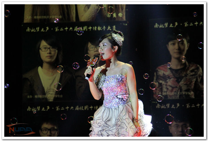 11月22日晚,由南京航空航天大学学生会主办的“南航梦之声”暨南京航空航天大学第二十六届校园十佳歌手大赛半决赛——梦想决战前夜在将军路校区掀开战幕。本次比赛评委阵容强大,分别由河海大学、南京工程学院、中国传媒大学南广学院三所高校的十佳歌手获奖者和我校艺术学院音乐表演与研究专业研究生张明宇以及我校第二十三届校园十佳歌手大赛白金奖得主张啸虎组成。 决战前夜,气氛热烈,开场舞《一起摇摆》将观众都带入了音乐的动感地带。主持人许喆涵和唐嘉泽的互相调侃也让氛围更加活跃。新增的人人墙让现场观众与台上的互动更加灵活迅速。半决赛共有三轮比拼。首轮是由各位选手围绕“很久以来,谢谢你”的主题依次演唱,由评委打分取前四名直接晋级圆梦巅峰之夜,后三位直接淘汰。选手们感谢父母,感谢朋友,感谢那段青春岁月。率性女生贾婧,一首深情的《后知后觉》表达了她对母校金陵中学深深地感谢与眷恋。低哑的嗓音,出色的音准,专注的神情,引得众人尖叫欢呼。评委们也被吸引,都凝神倾听,最终她以首轮最高分率先晋级12强。另外,甜美与优雅互补的EF组合、诠释“民族的就是世界的”的藏族姑娘莫阿子和大胆演奏原创作品的张艺耀也顺利晋级,章莹、黄橙和collapse乐队抱憾离开。