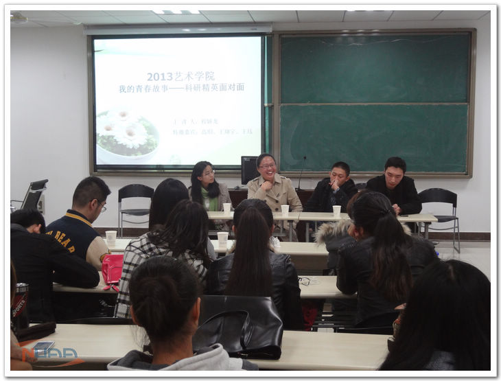 2013年我院的研究生国家奖学金评选工作已经结束,经过前期的评比、答辩、公示,我院共有4名研究生获得此项殊荣。11月14日晚,“我的青春故事——学术精英面对面”交流会于艺术学院举行。我院程娇龙、王珏、高玥、王翔宇四名获得国家奖学金的研究生分别带大家回顾了他们的青春历程和获得国家奖学金的经验,并针对新一届研究生的生活学习提出了中肯的建议。