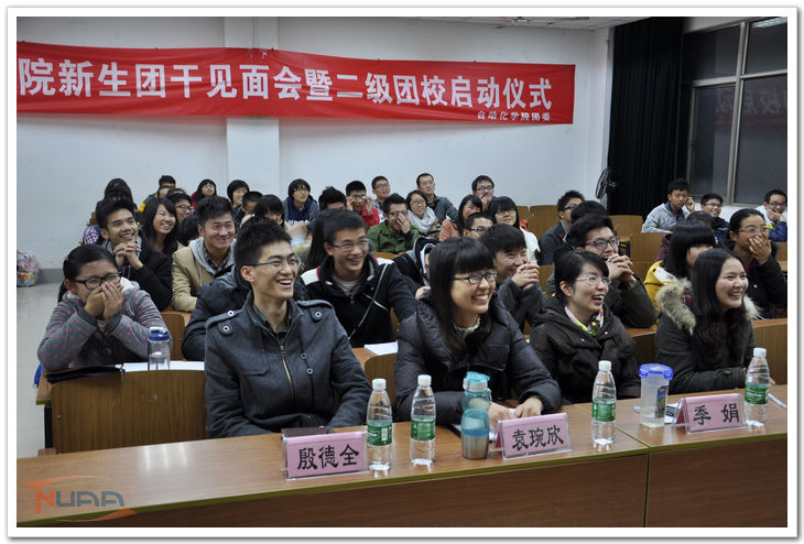 11月24日,自动化学院新生团干见面会暨二级团校启动仪式在将军路校区成功举办。学院团委书记季娟,团委常务副书记袁琬欣,团委副书记赵星星和学生会主席殷德全出席了见面会,学院团委新团干和2013级新生团干参加了会议。 本次见面会共分宣传动员、经验传授、分组交流、信任游戏四个环节。