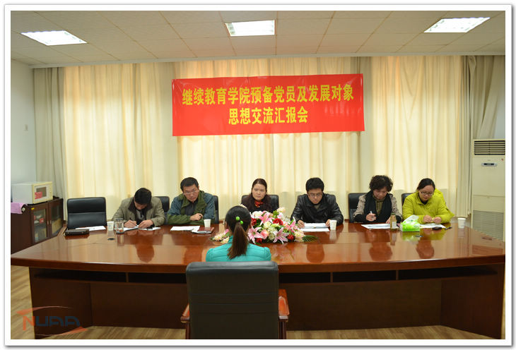 11月21日下午,继续教育学院在明故宫校区召开预备党员及发展对象思想交流汇报会。学院党委副书记涂志宏、学生管理办公室主任黄超峰及相关老师出席了汇报会,会议由学院党委委员秦颇主持。