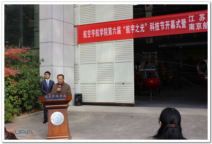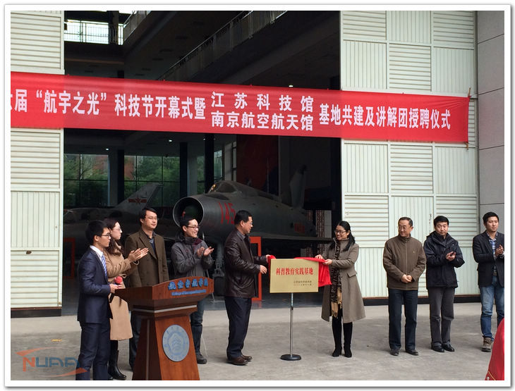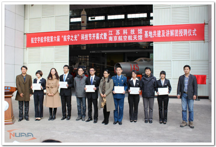 11月26日下午,航空宇航学院第六届“航宇之光”科技节开幕式暨江苏科技馆与南京航空航天馆基地共建及讲解团授聘仪式在我校明故宫校区举行。学校党委宣传部、研工部、校团委、学生处及航空宇航学院领导应邀参加,同时,江苏科技馆相关人员也出席了本次活动。