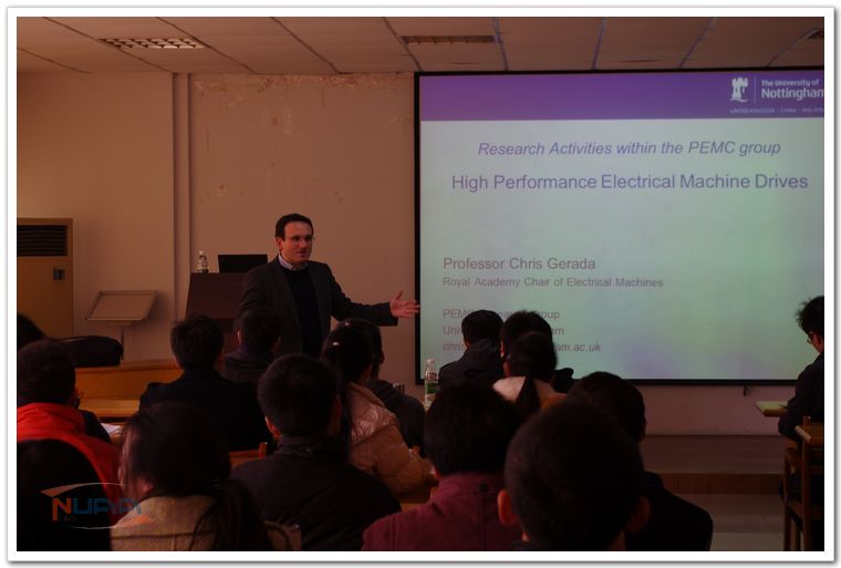 Chris Gerada 教授下午在智能楼四楼报告厅做了题为“High Performance Electrical Machine Drives”的学术报告。报告会由副院长刘闯教授主持,电气系老师和研究生积极参加了报告会。Prof. Chris详细介绍了诺丁汉大学电机与电力电子研究组在航空电源方面的研究方向及研究成果。特别从航空应用高功率密度、高效率和高可靠性以及容错要求等方面介绍了航空电机及变换器设计的诸多新概念和方法。报告最后参会的老师和研究生对Chris Gerada教授课题组在航空电机及控制方面做出的创新成果非常感兴趣,提问踊跃,Chris Gerada教授逐一进行了认真细致的回答。广大师生受益匪浅,报告在热烈的掌声中结束。
