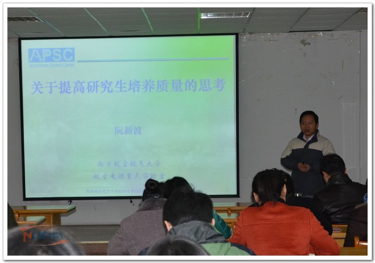 导师的道德学问、学术视野、科研思维乃至人格魅力,对研究生全面成长至关重要。通过研究生导师培训,使研究生导师全面了解和熟悉国内外研究生教育的理念、发展现状和发展趋势以及国家关于研究生教育的政策。熟悉研究生培养过程的各个环节,明确导师的岗位职责,是我校研究生培养管理进一步规范的重要标志。 为进一步加强研究生导师队伍建设,提升硕士生导师指导水平,保证研究生培养质量和研究生教育工作的管理质量,按照学校研究生院关于导师培训文件精神,我院2013年硕士导师培训如期开讲,讲座不仅要求学院新导师以及未参加过培训的导师参加,同时也吸引了多位博导和民航学院副院长葛红娟及民航学院的新导师参加。培训由副院长赖际舟教授主持。