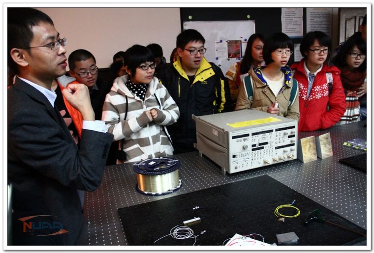 2013年12月1日,电子信息工程学院在明故宫校区举行第一期青年教师沙龙,本次沙龙请到了学院潘时龙教授。学院党委副书记季海群和2013级本科生辅导员周贞琪参加了此次沙龙。 在沙龙开始之前,参加此次沙龙的42位大一新生来到学院微波光子学教育部重点实验室。潘教授为大家详细介绍了该实验室的三大科研功能,用很形象的比喻地向大家讲解了微波的学科意义,同时介绍了本实验室里我院取得的成就。潘教授谈到实验室很多重大突破都是学院在读研究生完成,并鼓励大家多钻研,假以时日,在学生期间也能获得出色的科研成果。
