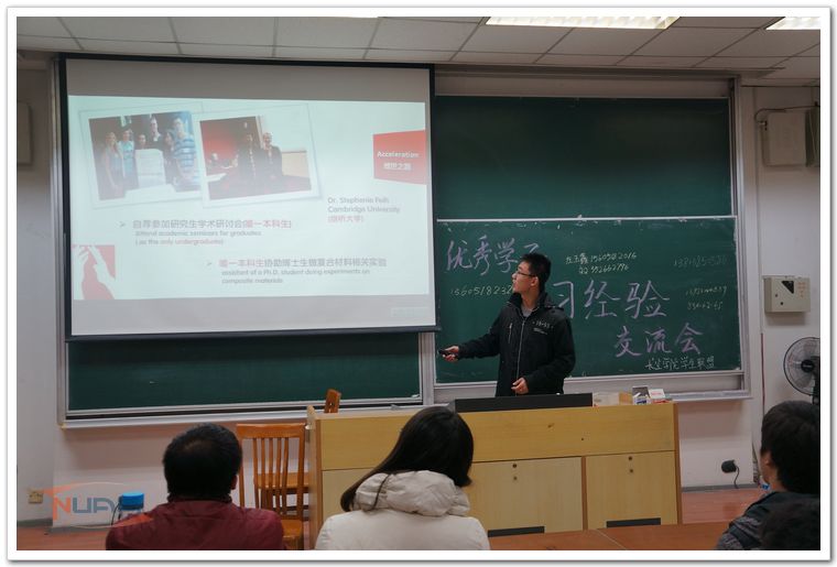 为了学习先进事迹,树立典型、榜样以及加强各培优班之间的交流与互动。12月2日晚,长空学院优秀学子学习经验交流会在将军路校区举行。此次活动邀请的优秀学子有校长特别嘉奖鸿鹄奖获得者朱雅亮、担当奖获得者袁琬欣、博世奖获得者崔腾、科创达人左玉鑫以及校团委组织部部长缪周。 朱雅亮以自身的曲折人生为例,表达了珍惜时间和追求梦想的观点,为同学们树立了勤奋踏实、锲而不舍的人物榜样,并呼吁同学们珍惜美好青春年华,把握大学这个广阔丰富的平台,肯定自我,戮力前行。左玉鑫和同学们分享了他的科创经历,提出了做好科创的宝贵建议。袁琬欣介绍了他的学生干部经历,各项志愿服务活动经历。他认为只要合理安排时间,学习与其他工作可以相得益彰,鼓励大家勇于付出,付诸实践。缪周结合自己的学生工作经验,用三个词“热爱、责任、目标”道出了自己的心声,他的坚持和热忱使大家深受感染。崔腾,作为“钱伟长”班校长特别嘉奖博世奖得主,以广博的视野,出类拔萃的成绩以及出色的科创成果让在场同学艳羡不已,赢得了同学们敬佩的掌声。交流会互动环节中同学们提问积极,气氛活跃,反响热烈,普遍感到受益匪浅。