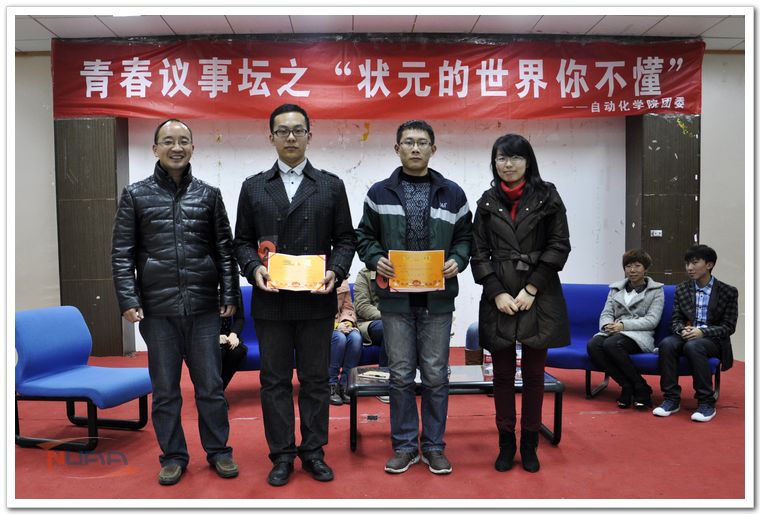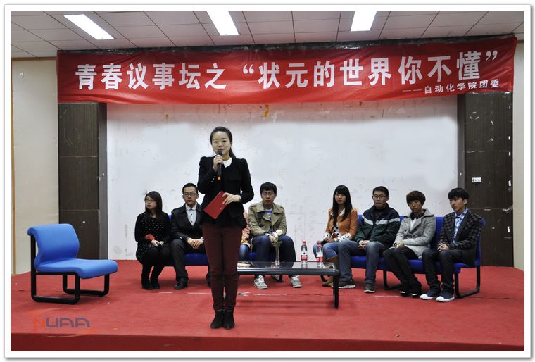 12月4日晚,青春议事坛之“状元的世界你不懂”活动于将军路校区艺术中心多功能厅举行,八名学生代表围绕“高考文科状元刘丁宁退学复读”事件展开了热烈的讨论。人文与社会科学学院教师娄和标、自动化学院团委书记季娟以及各年级辅导员作为评委出席了本次活动。 2013年,辽宁省本溪市文科状元刘丁宁以668(+10)分被香港大学中文系录取,并获72万元人民币奖励。10月初,刘丁宁离开港大,目前已经回本溪高中复读。对此,刘丁宁说,她追求更纯粹的国学,梦想进入北京大学中文系,北大也更适合自己。