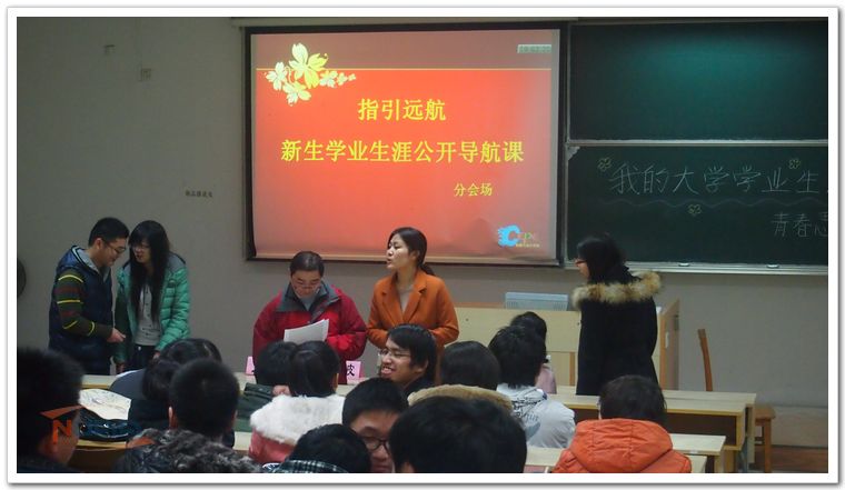 12月5日,为了进一步引导大一新生规划自己的大学生活,加深他们对如何度过大学以及如何抉择职业人生等问题的思考,能源与动力学院于将军路校区举办了指引远航新生学业生涯导航公开课。学院党委副书记王亚彤老师、团委书记葛琦老师、大一各班班主任、辅导员、一些保研和直博等优秀高年级学长参加了此次活动。主课堂由大一辅导员杨杰主持。 杨杰对期中考试成绩进行简要的总结,指出了同学们在学习中存在的问题。接下来分别由李小龙、赵则昂和黄帅三位优秀学长进行生动地授课交流,给大家详细地分享了自己大学的成功学习经验。