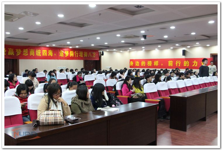 班会邀请了昔日在校级各类表彰大会上分享成长故事的优秀学子,用他们的经历激励低年级学生笃志前行。他们是国家奖学金获得者、2010——2011年度特别嘉奖思辩奖获得者、江苏省“我的青春故事”宣讲团主讲成员、现保送至北京大学的2010级学生张畅,第八届挑战杯课外学术作品竞赛一等奖获得者、国家级优秀创新基金主持人研一学生金蓉英,2011——2012年度校长特别嘉奖博世奖获得者、校社会实践十大个人成就奖获得者研一学生衣柏衡,这几位曾在校级表彰大会上绽放光彩的优秀学子,从台前走到学生中间,零距离为大家分享光鲜背后的成长故事。几位优秀学长学姐分别从学习方法、时间管理、学术的坚持和社会实践等方面讲述了自己的经历,并鼓励低年级的学弟学妹们明晰梦想,坚持不懈。