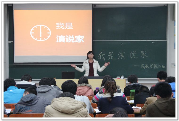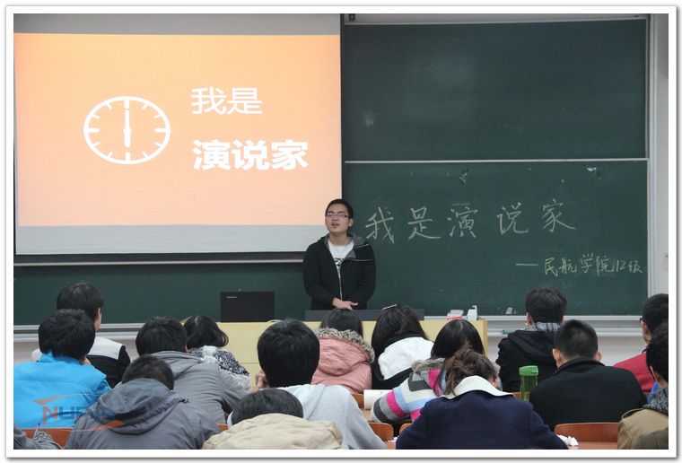 2013年12月6日, 6203教室洋溢起慷慨激昂的青春气氛,民航学院12级在将军路校区举办了“我是演说家”演讲比赛。经过自主报名和班级推荐,最终由20名同学参加本次比赛,评委由70名年级推选出的大众评审团组成。 本次活动共有两个演讲主题,分别为“我的2013”和“我的民航之路从XX开始”。参赛同学需要脱稿、上台演讲3分钟,大众评委根据演讲同学的现场表现,以及对演讲内容的喜爱程度进行打分。二十位选手,把握此刻属于自己的这个舞台,自己的麦,气场十足,大胆表现。从不同的角度切入,各抒己见,风格迥异却都精彩纷呈。言语之间,既有对过去一年的回顾总结,也有对经历的扣人心弦的故事的分享;既有对民航之路的深入思考,也有大爱民航的倾情讲述,教室里时而弥漫起伤感的气氛,时而爆发出欢声笑语。在短短两个小时里,在座的大众评委沉浸在演说家激情澎湃的演讲里,心情跌宕起伏,聆听了二十种不同的生活模式,二十种让自己过得精彩的方式,近六十个长长短短,触动心灵的身边故事。大家也思考了自己的生活、收获了许多的真情感悟和前进的真实动力。选手们真挚而浓烈的感情也感染了台下的观众和评委。比赛接近尾声时,有两位评委按捺不住心中分享自己感受和人间真情的冲动,把握机会大胆走上讲台,吐露了自己的心声。他们虽然不是选手,但是大胆的表现,真情的流露都展现出了惊人的勇气和高超的水准,博得了大家的阵阵掌声和由衷敬佩。