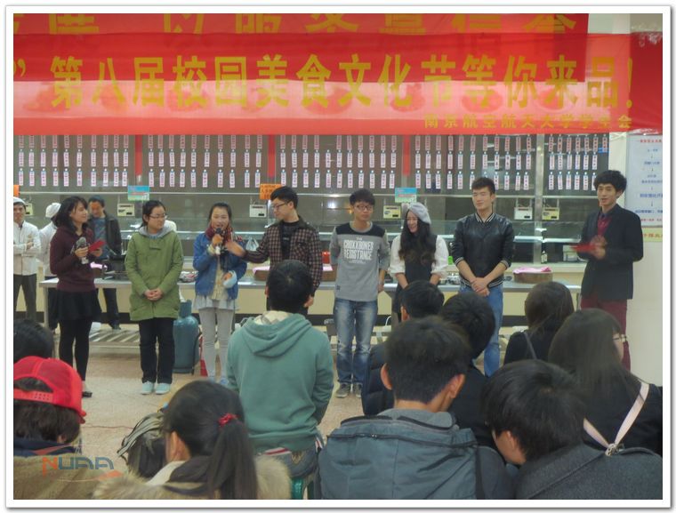 为继承和弘扬中华民族饮食文化,倡导健康生活方式,引导大学生树立合理健康饮食习惯,南航后勤集团饮食服务中心联合校学生会于11月12日——12月10日在将军路校区举办了南航大第八届“吃心望享食权益彰”校园美食文化节系列活动。 11月12日,第八届美食文化节开幕式在将军路校区樱花广场举行。本次活动设置趣味比拼、食堂生活体验、学生厨艺比赛3大板块。开幕式当天食堂师傅为学生们进行现场厨艺展示,学生们可以现场品尝。厨艺展示结束后学生们进行了“大胃王”的的趣味比拼,饮食服务中心为学生们免费提供比赛所需要的包子。美食文化节以独特的创意向过往的同学展示他们心目中的美食文化,趣味比拼活动吸引了大批同学驻足观赏。
