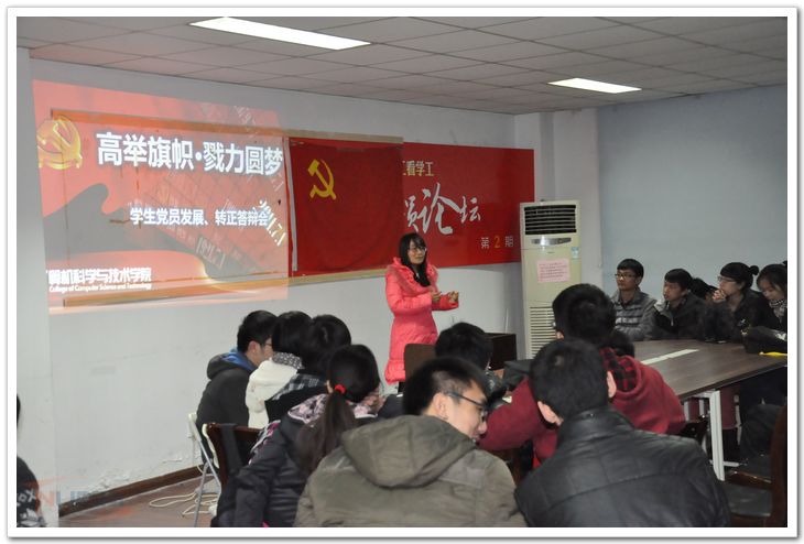 12月13日晚,计算机学院于将军路校区开展了“高举旗帜·戮力圆梦”学生党员发展转正答辩会。学院1611第一党支部书记、2011级辅导员刘彦辰,党支部全体委员以及学生党员代表出席会议并担任评委。会议由刘彦辰主持。 本次答辩会共分为个人陈述、党的基本理论知识考查、评委提问三个环节。在个人陈述环节,参与答辩的40名同学通过PPT,就考查期间的思想、学习、工作、生活和参加组织生活等方面的情况进行总结汇报,并从各自角度围绕“中国梦”、“十八届三中全会”等实事热点论述了自己的认识。在考察了党的理论知识之后,评委老师分别就个人陈述及党员先进性、党的十八大精神、学风建设等方面内容进行提问。同学们的精彩作答及深刻的认识赢得了在场观众热烈掌声。 据悉,计算机学院一贯注重党员发展中的过程控制,认真贯彻执行大学生党员发展“三投票三公示一答辩”制度,切实增强党员发展工作的科学性和公信度,进一步提高大学生党员发展质量。本次学生党员发展转正答辩会是加强学生党员的培养、教育、考察和管理的重要举措,有助于激发大学生党员的使命感、荣誉感和责任感,从而推动大学生党员队伍整体素质的提高。 ![]() |