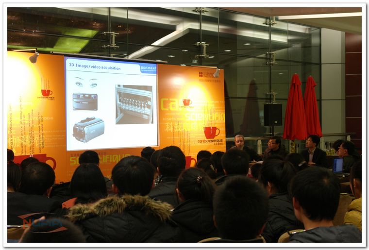 12月12日晚,计算机学院学生应邀参加了由江苏省科学技术协会与英国总领事馆文化教育处共同举办的,以“光电子技术与现代生活”为主题的科技讲座在咖啡科技馆活动。活动邀请到了西交利物浦大学的Tammam Tillo教授和南京工业大学的王海波教授开展主题讲座。 首先,Tammam教授为我们介绍了3D技术的原理基础和未来发展方向,浅显易懂的讲解加上生动到位的PPT演示,就算是英文的介绍也让大家听的津津有味,让3D技术不再高不可攀。接着,王海波教授带领我们走近光的世界,他向我们展示了光给人们的生活带来的变化,以及光科技的发展历程,幽默风趣的说话方式和渊博的知识底蕴都给大家留下了深刻的印象。