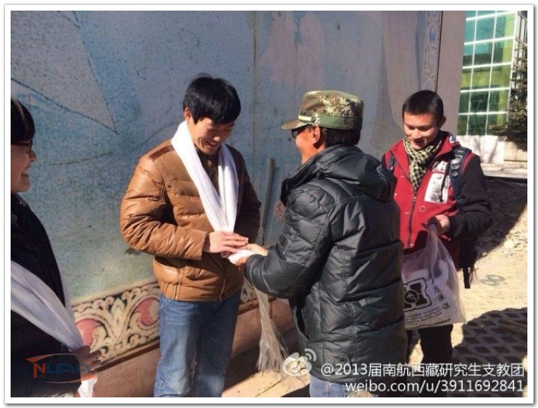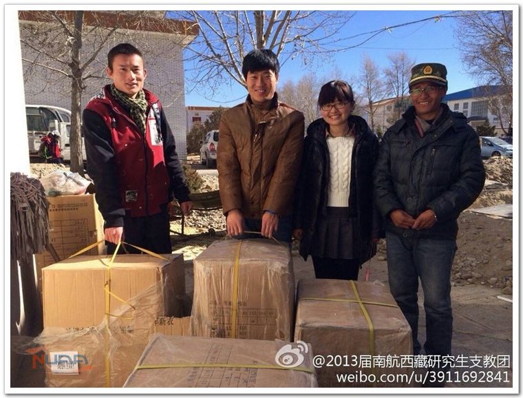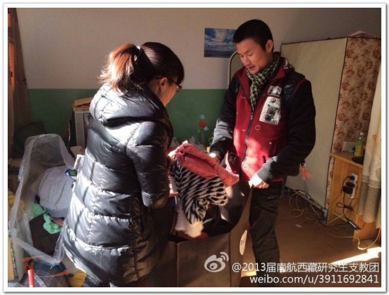 12月16日,南航研究生支教团西藏分队成员的小屋迎接来了他们又一批特殊客人——山南地区普玛江塘小学的校长多吉嘉措和当地派出所的援藏干部苏安,南航研究生支教团成员在帮助堆龙中学的孩子们解决了冬衣问题后,又为普玛江塘完小的孩子们募集了100余件冬衣,多吉嘉措给团员们献上了洁白的哈达,在零下十几度的高原冬季,在场的每个人都收获了满满暖意。 在西藏自治区,很多中小学地处高海拔的高寒地区,由于交通不便等诸多因素,孩子们还是很需要热心人的帮助。南航研究生支教团的成员们在关注自己所在学校孩子的同时,还积极与其他志愿者联系,目前同时在帮助三所学校做扶贫工作,包括堆龙中学、山南地区江塘小学以及阿里地区的孔繁森小学。支教团团长向蕾就是通过腾爱平台和来自北京的志愿者接洽,及时解决了江塘完小孩子们的冬衣问题。她说,能够在最美好的年纪来到这片神秘而美好的土地,是一种幸运,身上承担了更多的责任感。南航研究生支教团的成员们会在一年有限的时间里,尽最大的努力,为这里的孩子们提供帮助,教会他们乐观生活,开心过每一天。她呼吁,更多有爱心的人事能和志愿者们一起行动起来,为爱插上翅膀,让爱飞到更多更远更需要的地方!