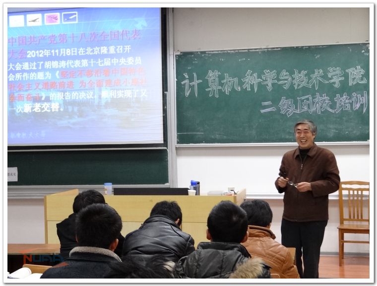 12月17日下午,计算机科学与技术学院二级团校之十八届三中全会精神宣讲会在将军路校区举行。本期二级团校培训课程邀请到了我校关工委常务副主任丁荣茂老师为学生团干解读十八届三中全会精神。将军路校区校卫队员、计算机学院团干代表以及2013级全体团员到场听讲。团课由学院2012级辅导员唐志文主持。 讲座以“开拓深化改革新征程,共筑伟大复兴中国梦——学习研读三中全会精神共话成才报国责任担当”为题,丁荣茂从十八届三中全会的内容讲起,图文并茂、联系实际,重点讲述了与同学们成长紧密相关的教育领域改革、人才机制改革、就业机制改革的相关举措。他指出推动中国全面深化改革的根本动力来自于中国梦,他向同学们阐释了中国梦的由来及时代内涵,展示了改革开放以来中国取得的举世瞩目的成就,也分析了转型社会下突显的矛盾和问题。他从中国梦引申至南航梦,讲述了南航人六十多年孜孜不倦的奋斗历史,通过著名校友“嫦娥三号”总设计师孙泽洲的事例,鼓励青年学子勇担时代责任,艰苦奋斗,为南航梦、中国梦的实现贡献青春智慧和力量。