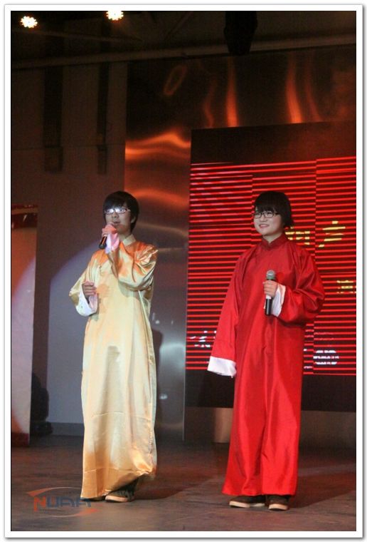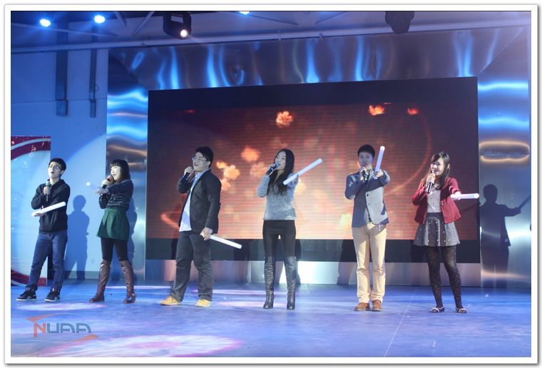 12月29日晚,电子信息工程学院“四院群英会 欢聚迎新年”2014年元旦晚会在将军路校区举行。出席此次晚会的嘉宾有电子信息工程学院常务副院长周建江、党委副书记季海群、副院长张弓、副院长赵永久、学院工会主席黎宁,学院教师代表、各年级辅导员和学院全体学生参加了此次晚会。本次晚会节目形式丰富多样,整场晚会精彩纷呈。冬日的寒意丝毫没有影响到同学们饱满的热情,晚会现场喜气洋洋、热闹非凡。 晚会开始,周建江教授致新年致辞,总结了学院一年的工作,提出了新年希望,并表达对全院师生深切的祝福。Sundae乐队唱响了晚会的第一首歌《Young for You》,狂野激情的摇滚乐引爆全场。之后,歌曲、舞蹈、相声、小品等表演接连而来,精彩绝伦。院学生会女生部带来舞蹈《bar bar bar》,活力四射的他们博得了在场观众的高呼。刘婷婷和王志奇两位同学的相声《咱的奇葩室友》将宿舍里的琐碎小事以生动幽默的形式展现出来,真实亲切,逗得全场笑作一团。乐器联奏《音乐城堡》、歌曲串烧,爵士舞等等更是充分展现了学院学生的才华。最值得一提的是师生联唱,李海林、李茁、张璐、张颖四位老师与四位同学分别搭成组合,联唱四首动人的歌曲。大四九位学生带来的小品《学姐和学妹哪个更适合做女朋友》中,一连串精妙的语句引起阵阵笑声。此外,还有外国友人Mana Flo 的倾情加盟。由我院两届十佳歌手白金奖得住周文柏和罗迪,还有学校十佳歌手带来的十佳联唱更是将晚会推向了高潮,让这个环节星光熠熠,用各自的风格演绎不同的曲目,最后的合唱《我的未来不是梦》激励了在场的年轻人勇敢追梦。