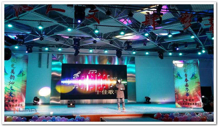 12月27日晚,人文与社会科学学院“流光美韵沁人文,溢彩青春嘉年华”2014年元旦晚会在将军路校区举行。本次晚会意在加强人文学院本科生与研究生及各年级的沟通交流,打造人文魅力,体味人文关怀。经过前期的大力宣传与邀请,有包括学院老师以及其他学院辅导员们等近八百名师生齐聚一堂,共度元旦,携手开启全新的2014年。 晚会在舞蹈和音乐中拉开了帷幕,人文学院的学生生们用他们青春飞扬的舞姿展现了作为南航文科生的活力与激情!晚会伊始,研究生代表带来了歌曲串烧,最具温情的是人文学院辅导员携手各个年级的学生代表们带来的精彩表演,辅导员王丹和大一、大三学生代表带来的朗诵《这里没有陌生人》,传递的是我们这个大家庭中浓浓的温情与爱意;辅导员马驰飞与大二、大四的学生代表一同演绎了《最好的未来》,给予了人文学子最美好的祝愿和真切的期望。人文学院团委、学生会工作人员用他们诙谐幽默的舞蹈向我们展现了团学积极向上的凝聚力!最具特色的节目就是小品《甄嬛传》了,为了给晚会增添更多乐趣,大三法班的男生反串《甄嬛传》中的小主们,用他们高超的演技逗得观众们捧腹大笑,也将晚会的气氛推向了高潮。