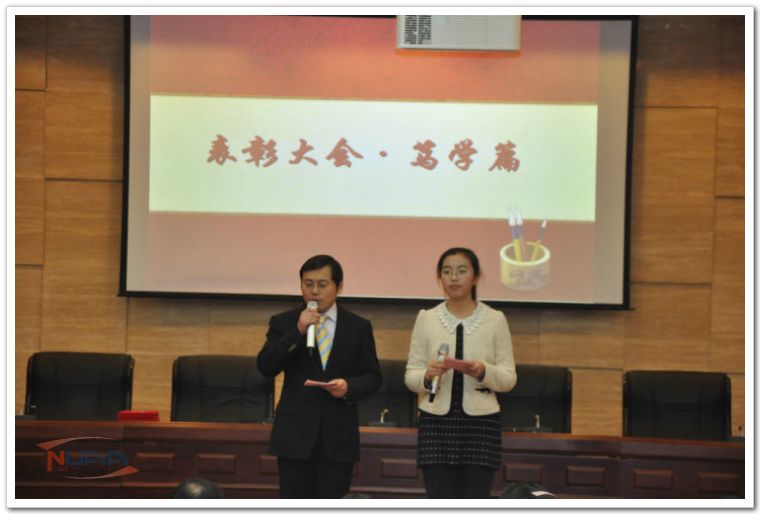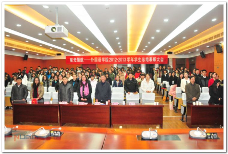 为增强优秀学生示范引领作用,感召激励更多同学扬帆起航追逐梦想,12月24日下午,外国语学院在将军路校区举行了院2012-2013学年学生总结表彰大会。全体院领导,部分班主任、专业老师和学院2012、2013级本科生、研究生共200余人参加了大会。 大会分为优秀学子事迹分享和获奖学子颁奖仪式两个部分。分享会上,外国语学院副院长刘长江、英语系主任石云龙、日语系主任窦硕华和校长特别嘉奖博世奖获得者崔腾分别与大家分享了他们对于笃学、励志、精英、鸿鹄的理解。无论是“学思结合”、“有志者事竟成”的点题,抑或砥砺奋进、综合发展的讲述,还是“志不强者智不达”的教导,都紧扣同学心灵,促人深思内省。一年来外语学子在素质能力培养中涌现出很多优秀的代表。分享会上,“韩素音青年翻译奖”竞赛优秀奖获得者李亚芬同学,休学一年重回学校并获得优异成绩的刘婷婷同学,国家励志奖学金获得者、校十佳歌手范启莎同学,研究生国家奖学金获得者李栋飏同学则结合自身经历分别讲述了他们在求学道路上克服困难、辛勤耕耘、百花齐放并实现阶段性目标的过程,同学讲述贴近实际具有较强的感染力、引领性和感召力,大会现场掌声阵阵,场面气氛振奋、感人。