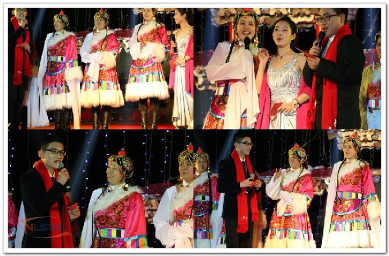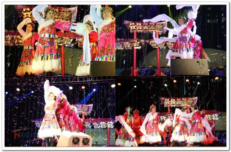 12月31日晚,将军路校区举办“梦想赓续 一生一世--奔向2014激情广场狂欢夜”大型新年篝火晚会,公寓阿姨受邀表演了藏舞《吉祥》,向学生们送上新年的祝福,现场数千名学生一片欢腾。 按学校要求,焰火燃放提前到了晚上8时,为了配合晚会的欢乐气氛,晚会节目组特邀公寓阿姨在12点跨年时表演舞蹈。晚上11:45,当阿姨们踏着欢快的音乐节奏,表演舞蹈《吉祥》时,现场顿时沸腾了。“阿姨,阿姨……”的呼声此起彼伏,学生惊叹着阿姨们的舞姿,感受到了公寓阿姨们对他们的期望与祝福,短短四分多钟的舞蹈,掌声如潮。表演结束时,阿姨们纷纷送上对学生的祝福,并与学生一起倒计时,进入了2014年。