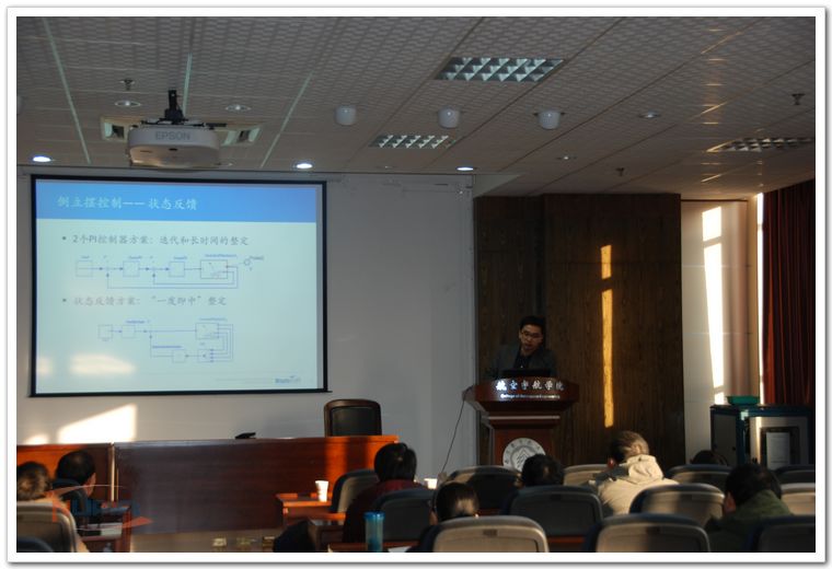 赵昂做了题为“轮摆式机器人建模与控制”的学术报告。报告介绍了轮摆式机器人建模以及基于此被控对象的控制器设计的基本理论和方法,讨论了系统线性化和非线性化的特性对控制器设计的影响。