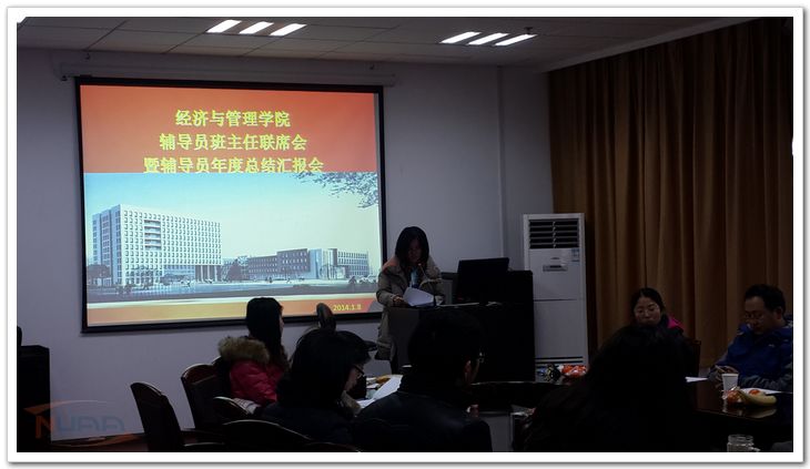 1月8日,经济与管理学院在将军路校区召开新年第一次班主任辅导员联席会暨辅导员年度总结汇报会。教学副院长朱建军,党委副书记许静,各年级班主任代表和全体辅导员参与了本次联席会,会议由党委副书记许静主持。本次会议旨在加强辅导员和班主任之间的沟通交流,共同探讨教学管理上发现的问题,及时解决学生学习生活上遇到的各种困难。 会上团委书记和各年级辅导员汇报了2013年度的工作和感悟。任慈用品牌、显“微”、协同等几个关键词展示了一年来经管学院团委在服务青年成长成才过程中的用心与用情。毕业班辅导员庞依达分享了他的“后爸”感受,用网络化管理机制和人性化服务体制来开展大四毕业班的工作,提出就业工作动员到位、就业信息宣传到位、就业推荐实施到位的工作理念,赢得所有老师的一致认可。大三辅导员肖秋莹通过自身创新创业的感悟引领年级创新创业氛围,带动学生一起成长,收获了诸多成绩。大二辅导员刘旭通过对辅导员角色的三个定位——思想的益友、学业的导师、生活的管理者,创新性开展日常工作,实现自己的教育目标。大一辅导员佘明分享了自己和学生共同的成长故事,通过创新性的服务管理和高效的沟通,赢得了与学生的友谊和老师们的肯定。 在辅导员们汇报结束后,各位班主任老师们对辅导员们的工作给予了高度的评价和肯定,同时也对提出了很多的意见和建议。会计专业班主任刘益平用八个字形容辅导员的工作,即辛苦、创新、激情、活力,同时建议辅导员们要多借力、巧借力来完成学生的教育管理工作。文强班班主任徐海燕提出辅导员和班主任要及时信息互通,双方形成合力,共促学生成长。工商管理专业班主任郇金宝提出要将班主任的个性化融入班级建设,形成班级的个性化和学生个体的个性化发展。最后,大家共同审议通过了《经济与管理学院班主任辅导员联席会制度》。 班主任和辅导员作为教育教学管理中的两大中坚力量,在学生成长成才过程中扮演着十分重要的角色。班主任辅导员联席会制度的确定有利于双方形成教学管理合力,有效发挥全员育人的成效。 ![]() ![]() |