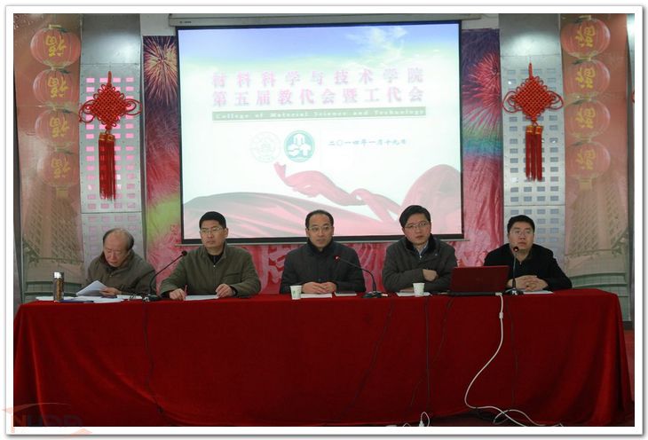 2014年1月19日,材料科学与技术学院第五届教代会暨工代会在西苑举行。学院党政领导以及90余名教职工代表参加了此次会议,校工会常务副主席袁贵平出席了本次大会。