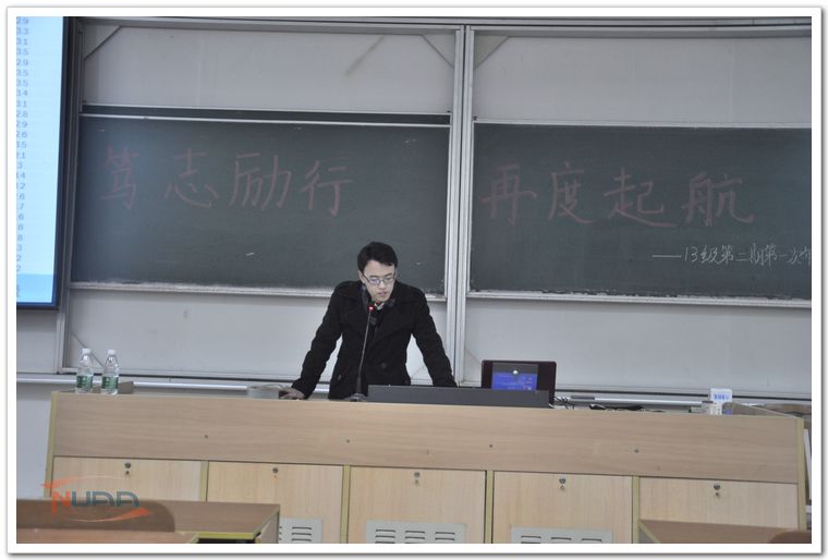 2014年2月27日,民航学院大一全体同学于4101阶梯教室召开了本学期第一次月讲评,大会主题为“励志笃行 再度启航”。辅导员康冲主持了本次大会。
