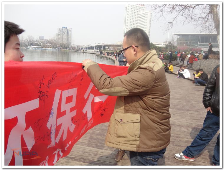上午8点30分两个班的同学、自行车队、“快闪”表演人员在院青协的组织下出发前往玄武湖。9点30分到达玄武湖后,表演人员进行了“快闪”表演,为此次志愿服务拉开了帷幕。从玄武湖公园管理处领取了清理垃圾的工具后,一部分志愿者组成“环保小分队”围绕玄武湖公园进行垃圾的清理和环境的美化,另一部分志愿者开展“千人签名”活动,宣传并号召大家保护环境,低碳出行,并给签名者发放环保小礼品。与此同时,自行车队的志愿者们从南航江宁校区骑行至玄武湖公园,并绕玄武湖公园骑行一周,同时拉起呼吁人们低碳出行,共筑绿色南京的横幅,以实际行动号召大家少乘坐私家车,多使用非机动车,真正做到低碳出行。伴随着志愿者们的辛勤劳动和满满的热情,3个小时很快过去了,此次“身体力行,共筑绿色南京”——玄武湖环保行志愿服务活动就在大家的不舍中结束了,看着变得更加干净的玄武湖公园,大家的脸上都浮现出满足的笑容。