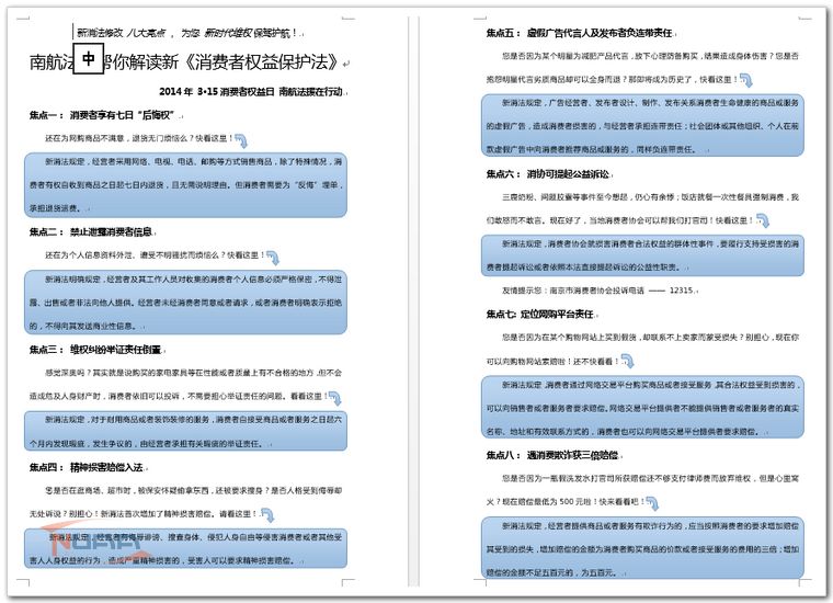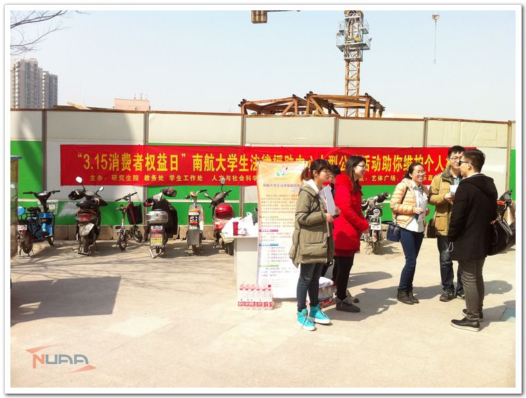 “你们帮忙打官司吗?”“你先别着急,把你的情况详细地跟我们说一下,我们会根据你的情况给一些建议、对策或援助。”这并不是发生在律师事务所的场景,而是我校大学生法律援助中心在进行“3.15消费者权益保护日,助你维权”的活动片段。 本次活动由南航学生工作处、研究生院、人文与社会科学学院共同主办,南航大学生法律援助中心承办,历时两天,旨在宣传与消费者相关的法律知识,以通俗易懂的语言为消费者解读新修订的《消费者权益保护法》,提高消费者的法律意识和维权意识,帮助他们维权。