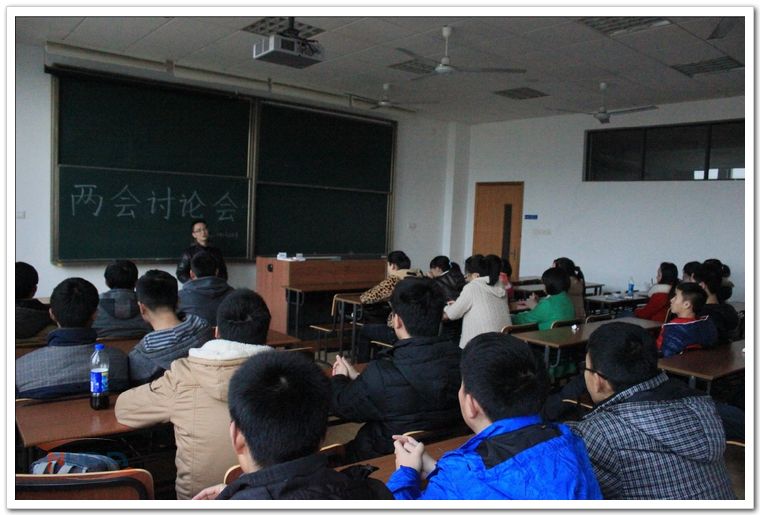 3月13日下午,0413003班在将军路校区召开了本学期第一次主题班会,参加的人员有班主任柳涛老师和0413008班全体同学。 本班的以“与两会同在,与环保同行”为主题,以“环保”为主要内容,以“增进大家之间的相互了解”为主要目的。在总结了上学期班级的集体风貌和学习情况后,柳涛以成绩作为切入点,谈到大家是大学生,以学习为主,也要关心身边的同学和社会的进步。柳涛与同学围绕“环保”这个话题展开讨论,两会期间,这个话题一直是人们议论的重点,我国是以经济建设为中心,取得了不少成就,但有很多适宜环境为代价的进步,大家的讨论不仅体现了公民对增强环保意识的增强,也讨论如何注重环保工作的推进。这次班会以互动式讨论为主,同学纷纷提问,问题涉及各个方面,班主任也结合自身经历为同学们详细解答。
