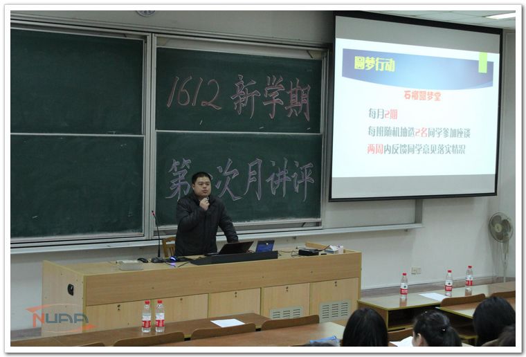 3月16日晚上,“主动的人生更出彩”计算机科学与技术学院2012级新学期第一次月讲评在将军路校区4101教室举行。本期月讲评的主题是激发同学们树目标、早规划的主动性和积极性,共分为两部分,第一部分邀请到了美国傲时软件技术公司软件工程师Curtis Lew和他的团队为同学们主讲时间管理;第二部分由2012级辅导员唐志文作上学期总结和新学期展望。