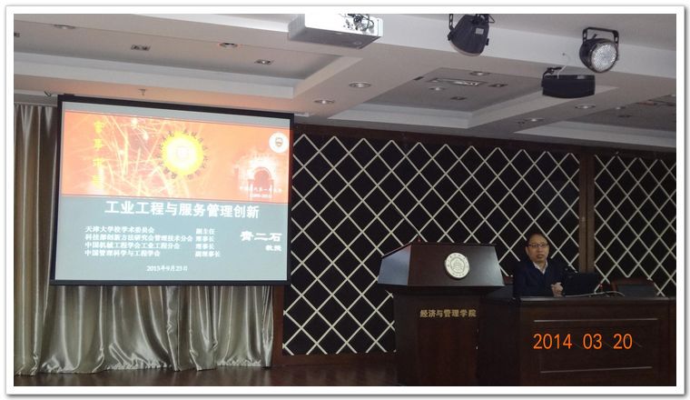 聘任仪式后,齐二石为我校经管学院工业工程等相关学科专业的师生作了一场题目为“工业工程与服务管理创新”的学术报告。齐二石在报告中系统地阐释了工业工程(IE)的概念,用生动的事例阐述了工业工程的应用,分析了我国工业工程的发展现状及存在的问题,阐述了服务管理创新的基本概念和理论要点,并以鲜活的案例解释了工业工程在服务管理创新理论中的地位与作用。