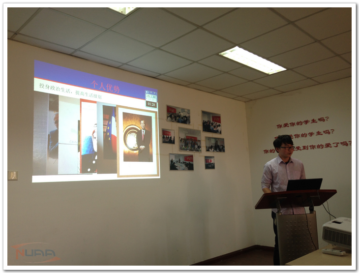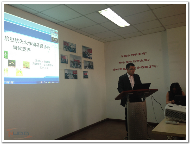 “用学术研究的眼光看运动、做运动。”在首先进行的生活部部长竞选中,民航学院辅导员张建辉亮出自己在体育运动方面的专业背景与学术积淀优势,提出让辅导员健康生活、高效工作。“设计理论、实践互动式的培训”,是培训部部长竞选人、自动化学院辅导员韩楚的主张,逻辑严谨、条理清楚的阐述赢得了评委与其他辅导员的鼓掌赞同。机电学院辅导员张凯在竞选演说中提到自己曾向联合国秘书长潘基文、南非前总统曼德拉等人去信,并收到联合国的实习邀请,立即吸引了评委们的关注与兴趣,纷纷向他提问。评委们指出,在现代高等教育迅速发展的时代,辅导员应该有拓宽国际视野、开展多元化学习的意识,从而更好地从事学生工作。