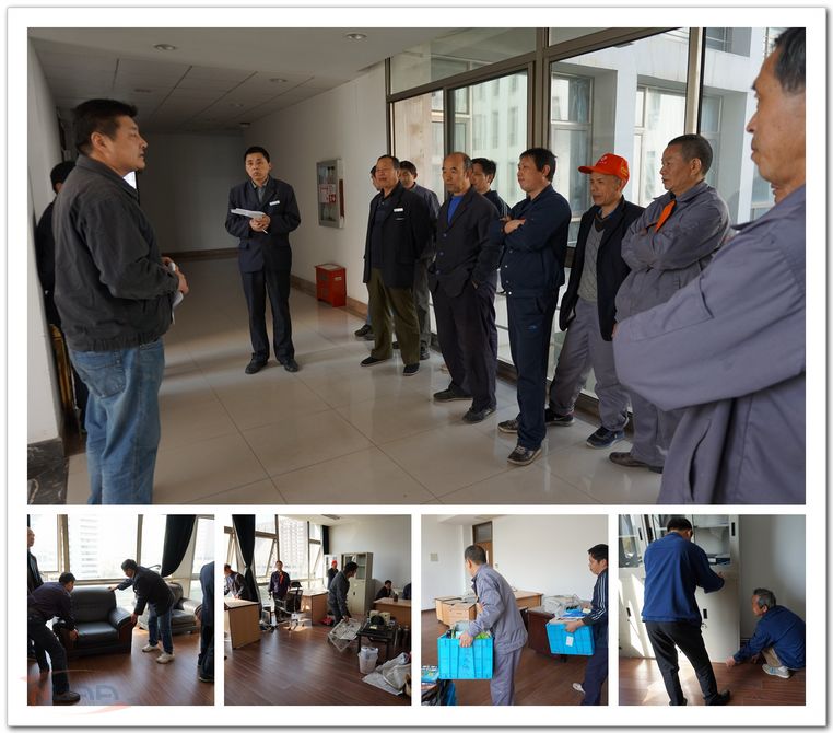 按校区管委会部署,将军路物管部近日对将军路校区管委会办公室进行了搬迁工作(由新行政楼二楼搬至三楼)。 为保证搬迁工作顺利进行,将军路物管部提前一周对三楼新办公室进行了保洁和卫生工作。4月4日搬迁日早晨8点,将军路物管部派出几十名精干员工,物管部主管周育峰主任现场对搬迁工作进行了详细部署,并再次提醒员工搬迁工作中的安全注意事项和具体要求,要求大家发扬吃苦耐劳、持续作战的精神, 全力以赴,保证办公室物品的完整和无损,并且不影响校管委会的正常办公。随后,物管部员工按照分工,由班组长刘祥干等各自带领小组成员,以包干区的方式投入到搬迁工作中。 此次搬迁,主要是将新行政楼二楼的十余间办公室平移至三楼。在二楼的十余间办公室中,需要搬迁的物品非常多,有整箱的文件、铁皮档案柜、书桌、沙发、保险柜、大型盆栽、电脑等等,搬迁工作量很大。面对如此繁杂的搬迁工作,物管部员工们不慌不忙、有条不紊的开始投入到工作中来,他们首先对每一间办公室里零散的物品进行细致的整理,分类装箱、打包,并及时做好标记和定位,以便搬迁时正确摆放位置。对于不方便移动的几十张办公桌,物管部召集木工对其进行先拆后装,将每张桌子都安装到位;对于大型物品,采取“腾、并”等方式,进行快速和妥善的调整。为避免堵塞主要通道,物管部员工兵分两路,从路程较远的两个楼梯通道进行搬迁,员工们在楼层之间挪动桌椅、沙发,反复来回上下楼梯,加上天气闷热,开工不久很多人的衣服都被汗水浸湿。但这丝毫没有影响他们的干劲,大家按部就班、有条不紊的按照事先确定的实施方案进行搬迁,直至中午12点多,搬迁工作顺利完成。此外,为保证了校区管委会的正常办公,物管部又抽调出两名女员工进行扫尾工作,将搬迁的桌椅、办公用品、抽屉柜等一一清理和擦洗。 此次搬迁工作迅速平稳,保证了校区管委会的办公不受影响,得到校区管委会的肯定。物管部员工行动迅速,措施有力,体现了迎难而上的精神品质和极强的战斗力,物管部领导全程参与搬迁工作,起到了模范带动作用。
