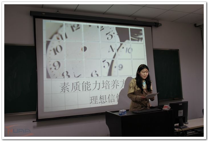 4月15日,“我的素质能力我做主”主题研讨会第一讲正式开讲,本讲分为 “我的大学游戏我来战”、“我的素质能力我来谈”、“我的发展计划我制定”三大模块,围绕“理想信仰”、“文明礼仪”、“诚信意识”、“包容气度”四项素质能力,采用学生主体喜闻乐见的形式和内容进行解读,并就素质能力指标对应的主要培养平台进行研讨。过程中学生结合中国首档青年电视公开课《开讲啦》视频启发大家对“理想信仰”的思考与实践探索;通过《面试礼仪》小短剧模拟面试环节,生动形象的解析文明礼仪的重要性与培养途径;通过自编自演《立木取信》和《烽火戏诸侯》情景剧,幽默中带有寓意的解析引发学生在欢乐中深入思考“诚信意识”的重要性;从心理小测试出发解析如何在日常生活中实践“包容气度”。
