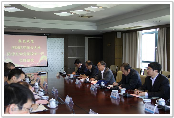 4月24日上午,沈阳航空航天大学陈保东常务副校长一行来我校就现代大学制度建设、新时期高校人才培养的新途径、新模式等方面进行调研。王永亮副校长、党政办、发展计划处、教务处、科技部、人事处、信息中心相关负责同志参加了座谈会。