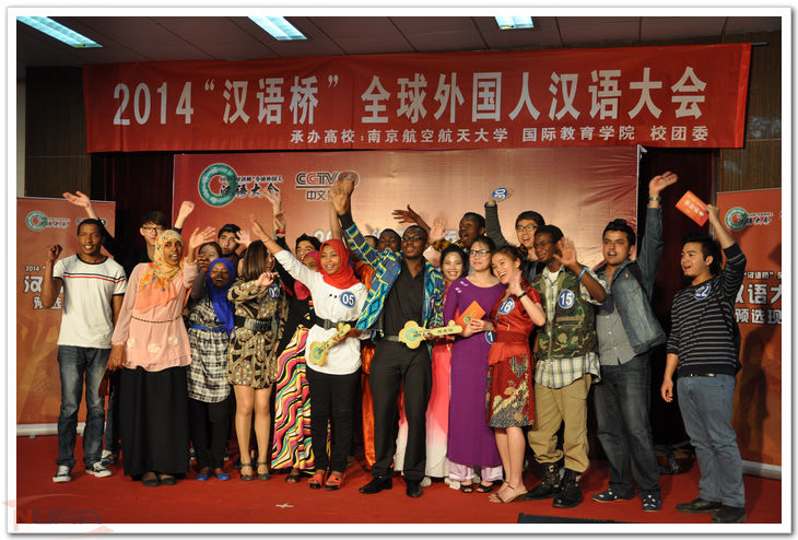 5月5日,2014“汉语桥”全球外国人汉语大会南京赛区的比赛在我校将军路校区举行。本次大赛由中央电视台与国家汉办(孔子学院总部)联合主办,中央电视台中文国际频道承办。由我校国际教育学院和学校团委承办了本次南京赛区的比赛。外国语学院教授、硕士生导师吴鼎民,凤凰出版传媒集团编审办公室主任祁智和江苏城市频道主持人范娜共同担任了本次大赛的评委。 经过各高校的层层推荐,我校国际教育学院6名留学生与来自南京大学、南京信息工程大学、河海大学和江苏大学的参赛留学生们齐聚一堂,凭借深厚的汉语功底和对中国文化的研习相互切磋交流。本次大赛共分为笔试、预面试和面试三个环节。笔试题共设36道,考核内容包括汉语读写和中国历史文化题,预面试内容涉及留学生的生活及汉语知识,在最后的面试中留学生则被要求做一分钟的自我介绍以及回答评委的相关提问。国际教育学院来自尼泊尔的留学生高波(Gaurab Gurung),用吉他弹唱的方式向大家做了一场别开生面的自我介绍,顿时赢得了评委和观众的阵阵掌声。