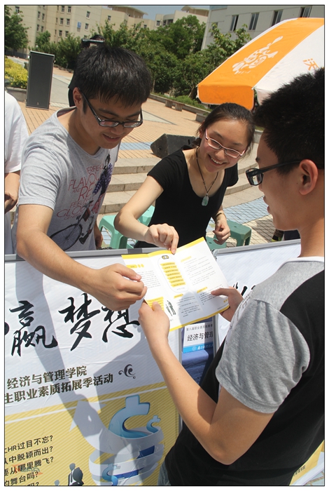 5月12日中午,“职通未来”—第八届“大学生职业素质拓展季”系列活动现场推介会在将军路校区樱花广场举行,来自全校14个学院的活动策划组通过多样化的宣传形式各展风采。