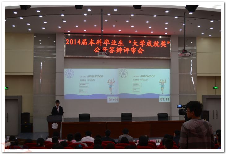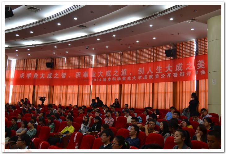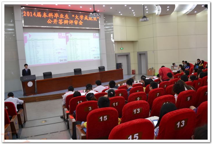 5月13日,2014届本科毕业生“大学成就奖”公开答辩活动在我校将军路校区一号楼四楼报告厅举行。此次答辩评审专家由校学生工作指导委员会成员单位代表、学院评审专家代表、企业人力资源专家代表和学生代表组成。经过学生的自主申报和学院的初评,学院共向学校评审委员会推荐了25名同学参评2014届毕业生“大学成就奖”。