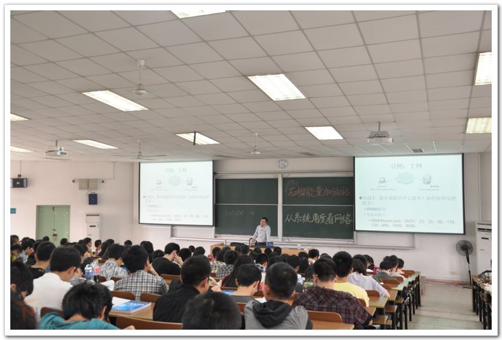 5月12日下午,计算机科学与技术学院“石榴能量站”学术指导讲座在将军路校区举办。本期邀请到了计算机学院副院长陈兵教授,他为大家作了“从系统角度看网络”的学术讲座,计算机学院与理学院大三年级300余名学生到场参与。 讲座一开始,陈兵就提出“我们天天都在用网络,网络到底是什么”、“网络看得见摸得着吗?”等问题来引发同学们的思考。网络已经成为社会基础的一部分,它无处不在。陈兵以浏览网站这个应用需求为例,从软件工程的角度剖析网络分层和建立体系结构的必要性,并自顶向下剖析剖析了TCP/IP体系的应用层、传输层、网络层、数据链路层、物理层的具体工作机制。陈兵从横向和纵向两个维度对计算机网络知识进行总结,横向为对等层之间的通信,纵向则为上下层关系。 现场同学纷纷表示,本次讲座紧扣案例,生动形象,对现有课堂知识进行了深度拓展。让大家站在系统的高度上了解计算机网络的体系结构。 ![]()