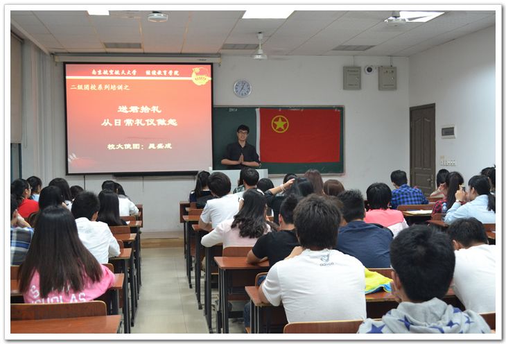 5月13日,继续教育学院二级团校在明故宫校区举行系列培训之“送君拾礼——从日常礼仪做起”。此次培训由校大使团晁盛成担任主讲,校大使团团长奚小茜作为嘉宾出席本次培训,70余名团校学员参加本次礼仪培训学习。 晁盛成通过PPT,从“礼仪”一词的由来慢慢引申出日常礼仪的核心和基本要求。他用一张张形象突出、内容详实的图片向到场同学讲解了各类型礼仪的具体要求,并且通过现场模拟环节,让同学们身临其境,充分体会礼仪的内涵,使学生们能够更加直观的去学习礼仪知识并意识到礼仪对个人成长发展的重要意义。 通过本次培训,使同学们认识到了礼仪无处不在,它是一种生活的态度,是一种展示个人高雅气质的标准,我们的一举一动、一言一行都影响着别人对自己整个人的评价,所以礼仪规范也是当代大学生重要的学习内容。