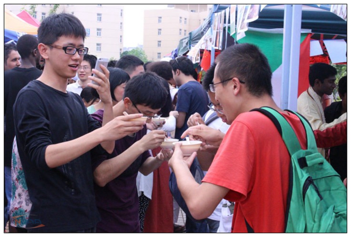 5月14日,第十三届明御翠屏青年文体节之“异”彩“留”光世界民族文化节在将军路校区樱花广场开启。校团委副书记徐川出席了开幕仪式并致辞,国际教育学院副院长张国权出席了本次文化节。 在本次世界民族文化节上,来自中国、加纳、尼泊尔、孟加拉、印度等三十多个国家的学生积极参加,充分展示了各自的舞蹈、音乐、美食、工艺品、服饰等特色民族文化元素,为现场广大学生和观众带来视觉、听觉、味觉等多感官上的震撼与享受。 “环球美食汇”上,来自世界各地的特色美食悉数登场,印度留学生独家秘制的咖喱鸡丁、维吾尔族学生的新疆葡萄干、特色坚果,毛里求斯留学生的亲手调配的水果酱,斯里兰卡留学生的锡兰红茶……中外学生同台竞技,巧手烹饪出各色美食,让中外学生们大饱口福。 “民族风情展”上,各国学生带来了自己国家最具特色的民族服装、饰品,还有极具风情的民族图片。流光溢彩的光影配服饰,向大家展示了一个个神秘又美轮美奂的异域国度。 “民族歌舞秀”环节,来自新疆的维吾尔族姑娘和小伙子们,身着民族服装,载歌载舞,尼泊尔、刚果、肯尼亚、加纳、赤道几内亚的留学生也身着节日的盛装,带来极具异域风情的歌舞。本届世界民族文化节吸引了大量的学生和老师前来观赏,人群中不时爆发出阵阵热烈的掌声和喝彩声。 本次活动由校团委主办,国际教育学院承办,国际交流协会协办。旨在为中外学生提供交流的平台,促进世界各民族文化交流。