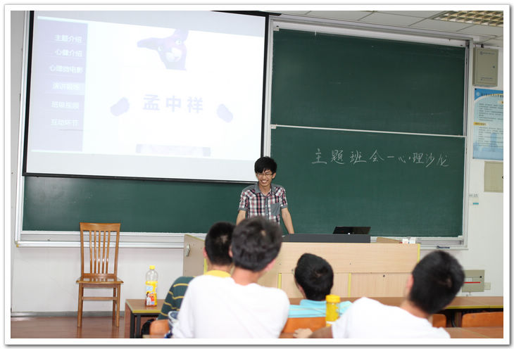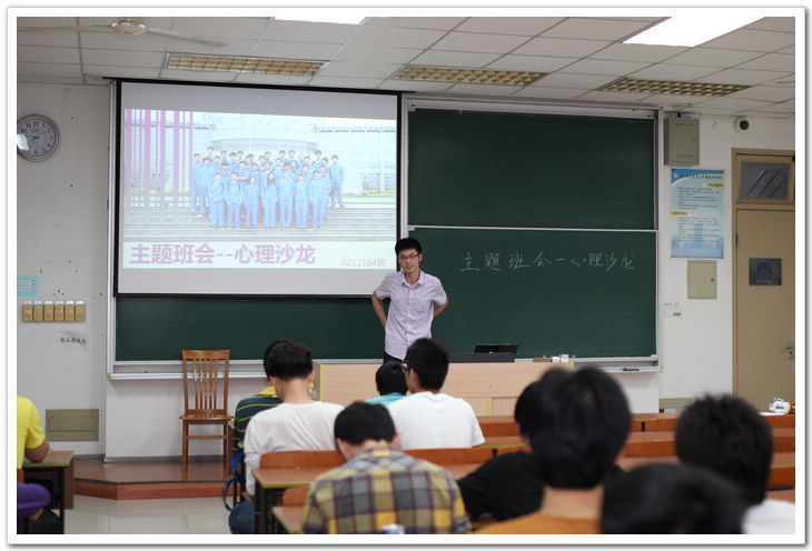 为了让同学们了解心理健康的新概念,提高同学们的心理健康水平,让同学们在轻松的气氛下调节身心,提高班级凝聚力,构建和谐的班级, 5月22日,能源与动力学院召开了“心灵的春天”心理主题班会。 由于内容的活跃及同学的积极配合,班会的整个过程都充满了活力与激情,而大家也通过本次班会对心理健康这方面的兴趣越来越浓厚从而激发了热烈的讨论。此次班会环节如下:主题介绍、心健介绍、心理微电影欣赏、学生自愿上台讲话、班级视频以及最后的互动环节。“班级视频”为整个班会起到了助推剂的作用,把气氛带入了高潮。最后的互动环节则是每位同学谈一谈对坐在身旁同学的印象,这一环节不但让同学们在他人的评价中认识了自己,而且也为提高班级凝聚力起到了重大作用。 此次心理主题班会的顺利进行为以后的班级活动打下了良好的基础。在游戏中学习,在学习中成长,在成长中完善自我。