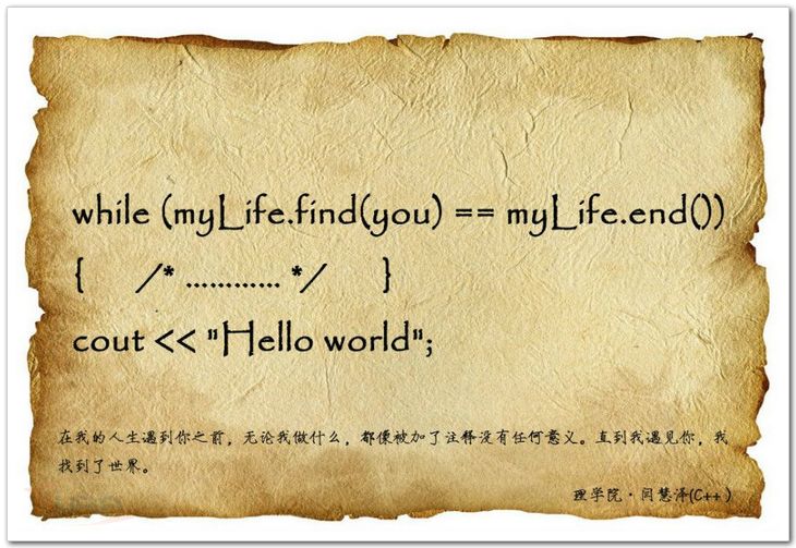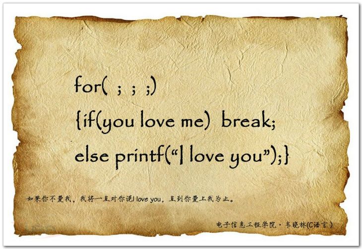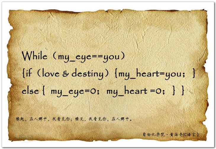科技时代,他们已不局限于手书笔写;计算机时代,他们已跳出传统文字。“微创意 微创新”,让科技引领潮流,一个个平凡的数符编绘成一句暖心的情话,不一样的三行情诗告诉你:工科男不是只知道埋头敲打键盘的“计算机狂魔”,他们善于理性思考,用程序书写爱恋。