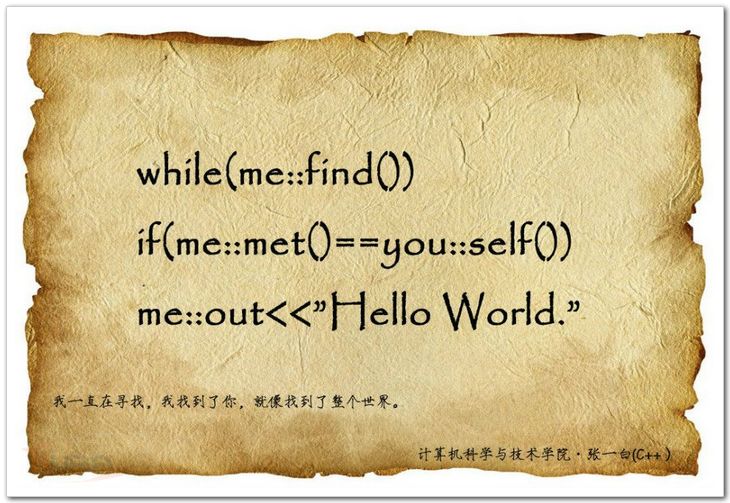 String me=“hello,world!”; While(life~~){me=“???”;} Me=“世界,你好!”; 即使一生备受质疑,相信程序猿也终会塑造新的自己。
