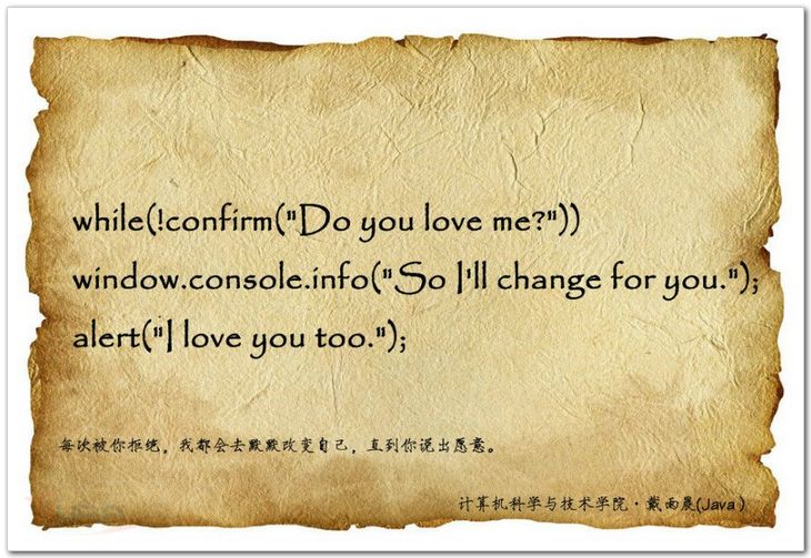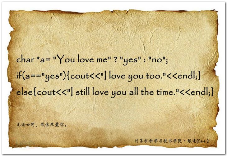 红玫瑰+烛光晚餐=我爱你?小纸条+占座=我喜欢你?牵牵手+陪你走=我会一直陪着你?……这些都out啦!近日,南京航空航天大学计算机科学与技术学院举办的“程序员情诗”创意三行代码挑战赛完美落幕,工科男生们用程序和代码表达自己的爱。