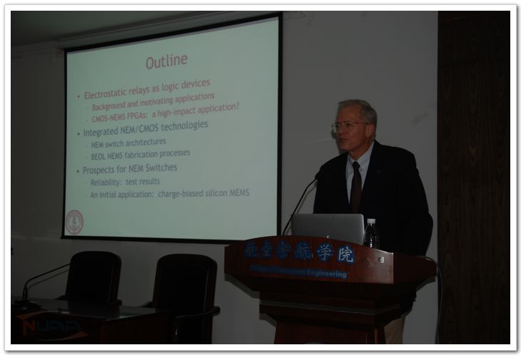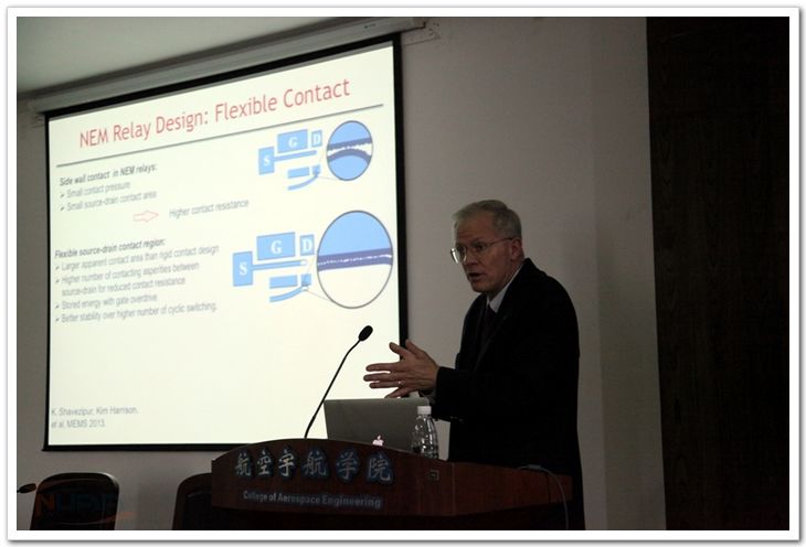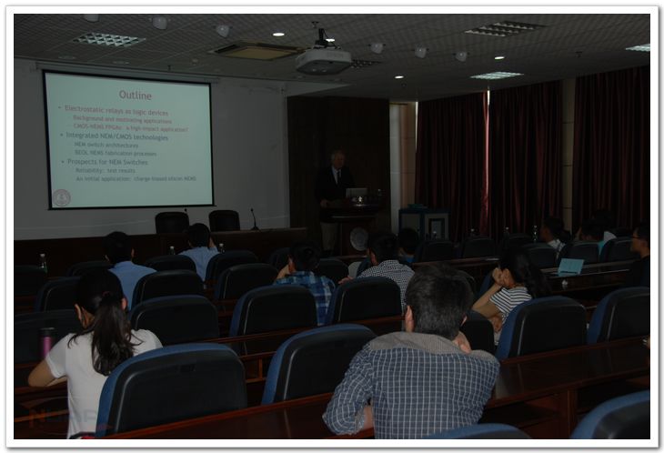 访问期间,做了题为“Electrostatic Nano Electromechanical Switches (NEMS) for Energy-Efficient Digital Systems”的学术报告,介绍了NEMS的最新进展,特别静电驱动在设计NEMS时起到的关键作用。