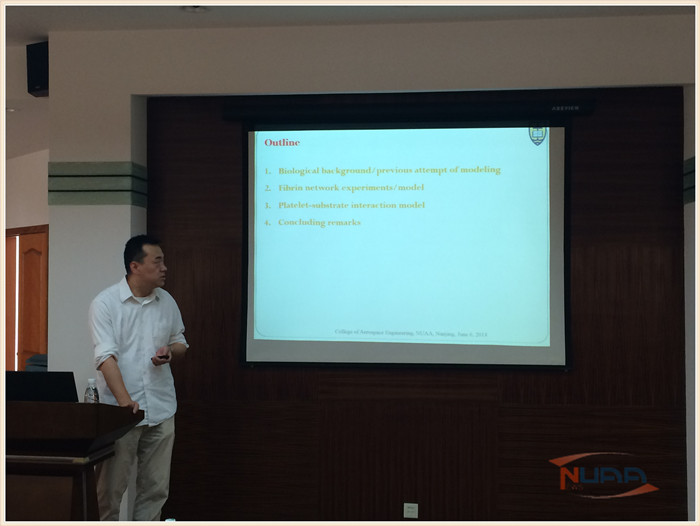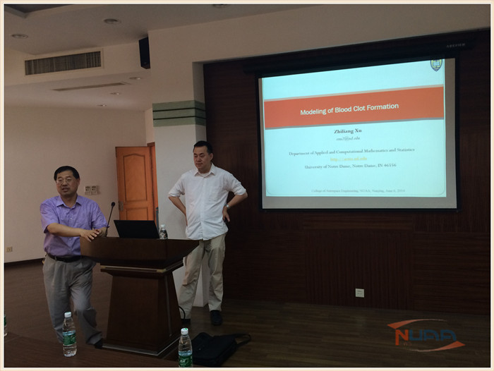 应我校航空宇航学院赵宁教授邀请,美国圣母大学应用和计算数学及统计学系许志良副教授于2014年6月5日至7日来我校进行了学术访问。 访问期间,许志良做了题为“Modeling Blood Clot Formation”的学术报告,就计算生物流体最新研究进展做了详细的报告。