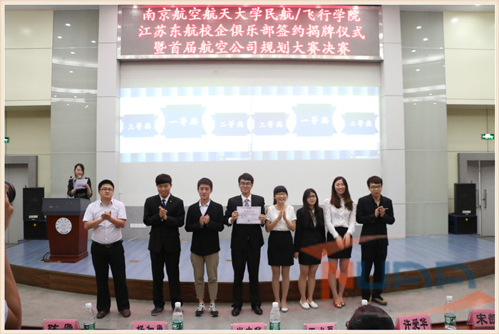 6月13日晚,民航/飞行学院第一届航空公司规划大赛决赛在将军路校区一举行。担任本场比赛的评委是江苏东航人力资源部规划配置管理主管王心磊女士,飞机维修部副总经理兼总工程师肖志华先生,飞行签派分部高级经理杨加勇先生,飞机维修工程部工程师陈勇先生,人力资源部王树红女士,南京航空航天大学民航学院交通运输工程系主任曾小舟老师,交通工程工程系吴薇薇老师。校学生处副处长许爱华、民航学院党委副书记宋凯也参加了本次活动。